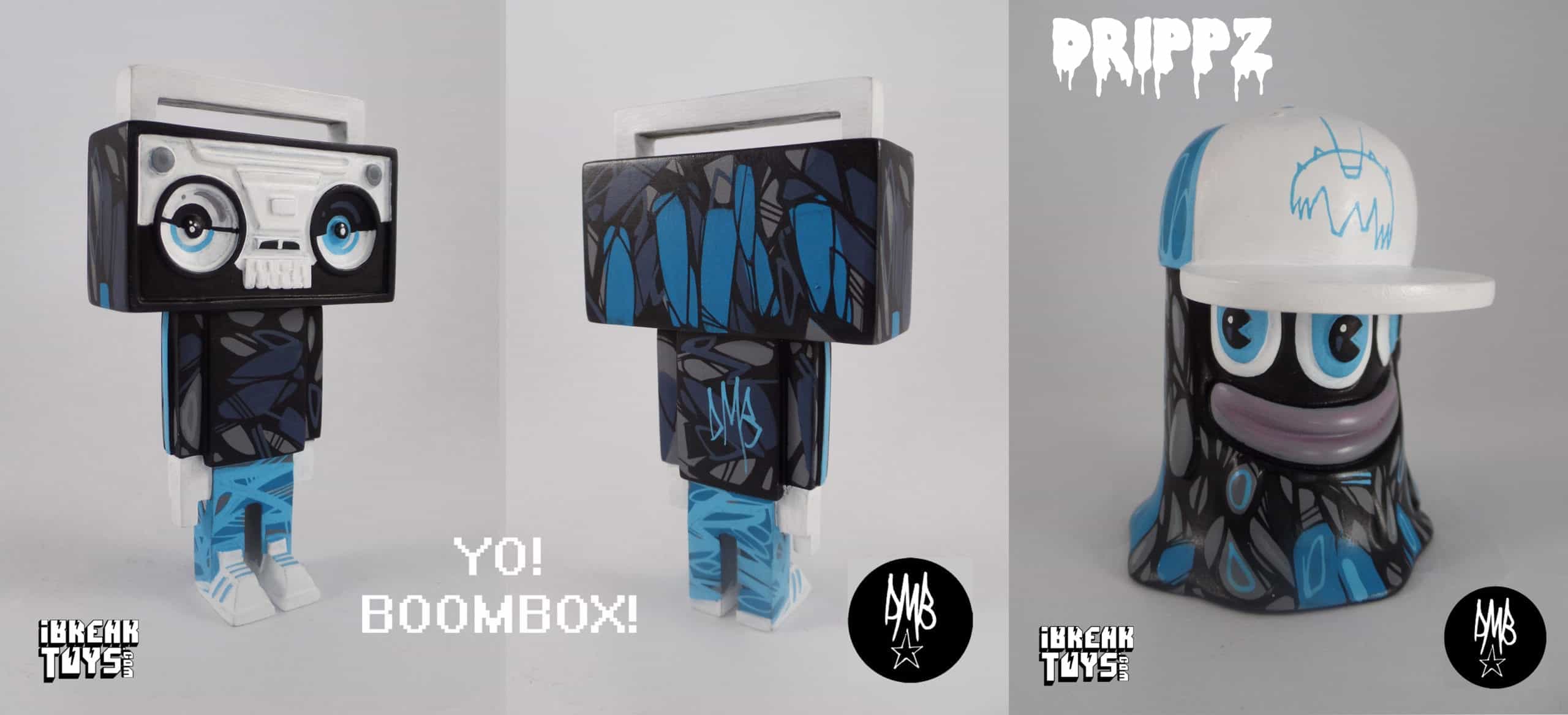 I sent a YO! Boombox! and a Drippz to the wonderful David Bishop aka RunDMB to customise in his distinctive style. So awesome!